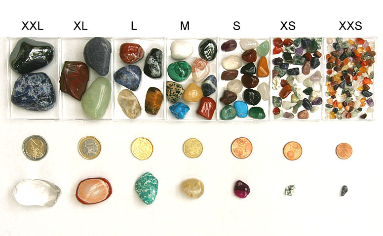 Kaufen Sie Trommelsteine als bunte Mischung halb-kiloweise oder Beutel mit reinen Sorten aus unserer Schatzkammer! Diesen Bestand, insgesamt mehrere Tonnen schwer, haben wir während unserer jahrzehntelangen Tätigkeit als Mineralien-Großhandel aufgebaut. Bei all der Masse hat bei uns immer die Klasse der Trommelsteine im Vordergrund gestanden, d.h. Steine mit schönen Bänderungen, Mustern und kräftigen Farben. Diese Trommelsteine bieten wir hier meist in Halbkilo-Beuteln an - ideal zum Dekorieren in Brunnen oder Vasen, Auslegen von Mandalamustern, ... oder zum großflächigen Auflegen auf den Rücken, zum Basteln, zum Verschenken,...